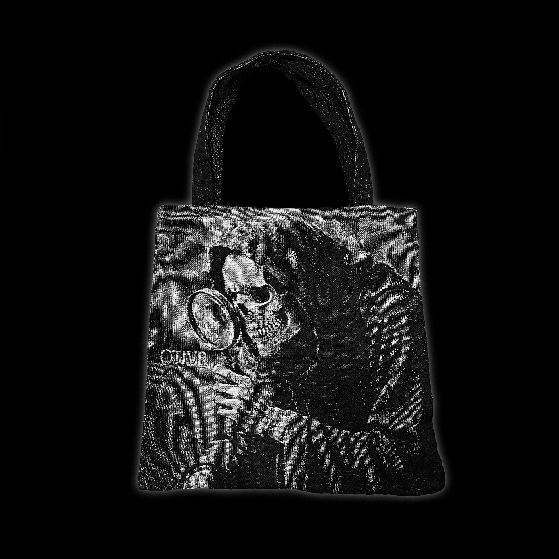 Features original OTIVE artwork: Death gazing through a magnifying lens upon the brand name
